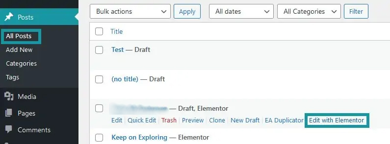 Edit a post with Elementor