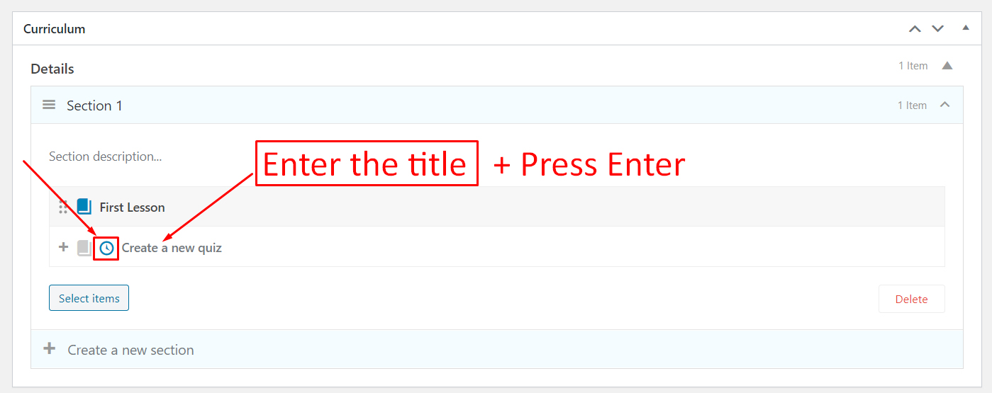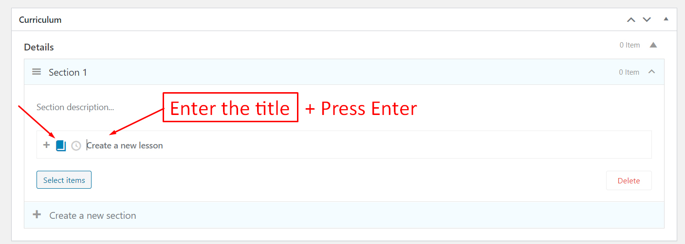 - To create a lesson, you just need to enter the title for the lesson, then press “Enter”, the lesson will be created.