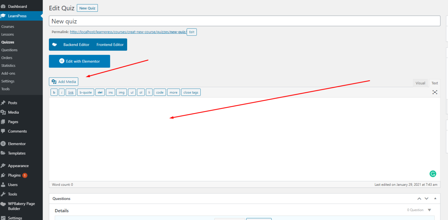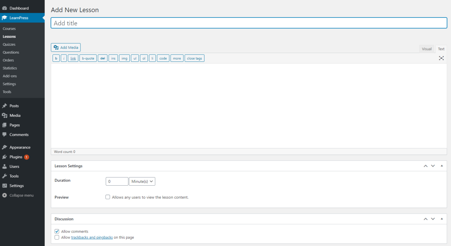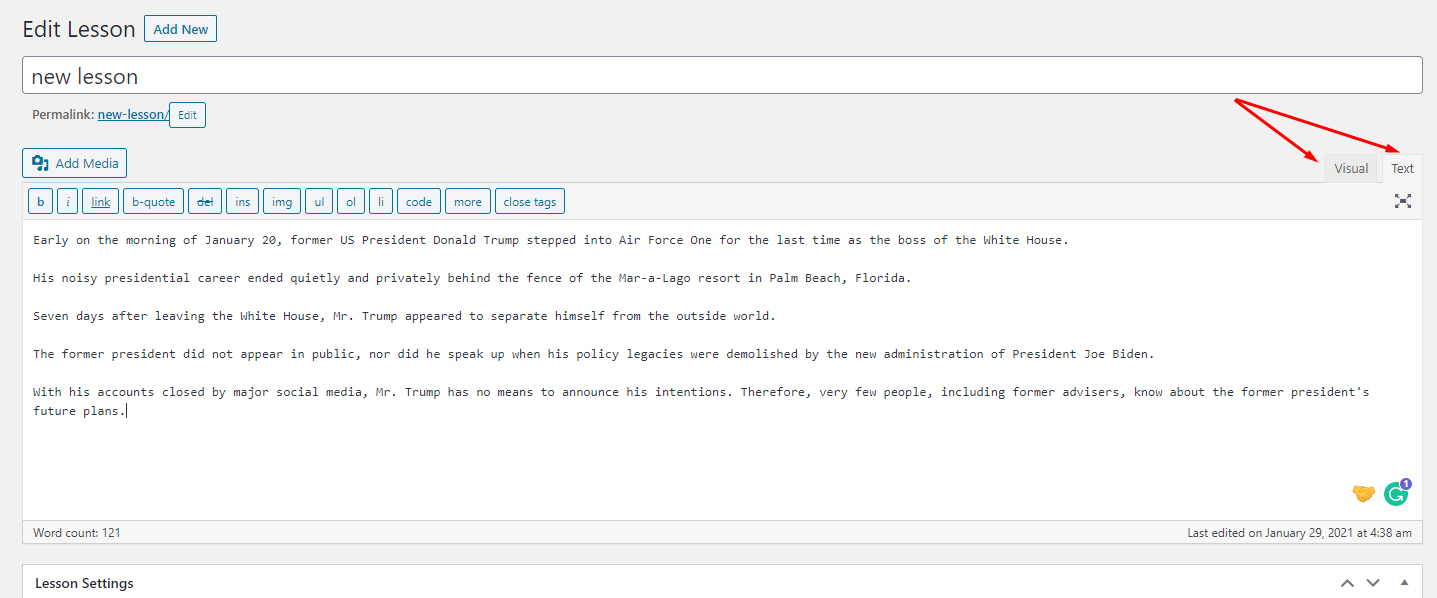 With Learnpress, we support lessons with text and media content.