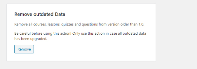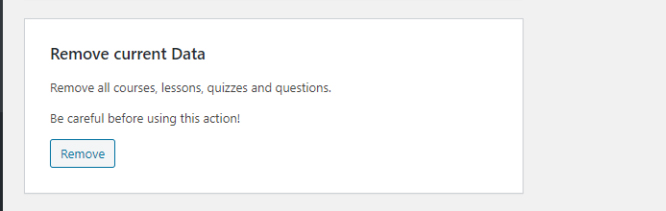- Remove current Data: This option allows deletion of all courses, lessons, quizzes, and questions.
