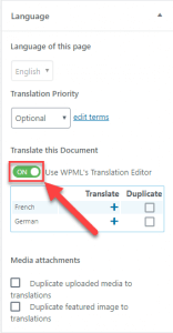 - In the sidebar, find the Language meta box, and turn off WPML’s Translation Editor.