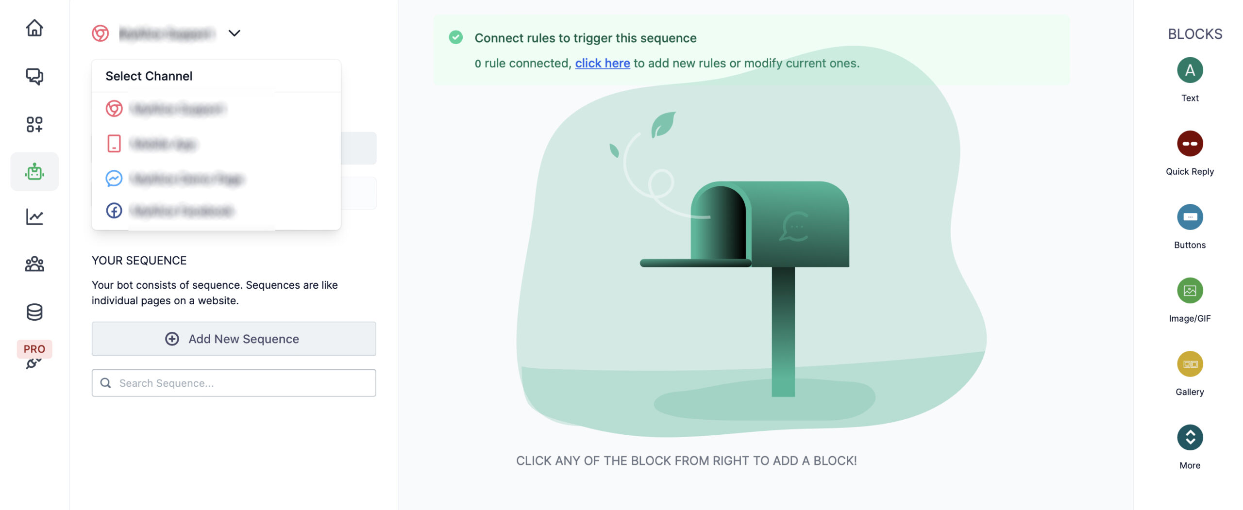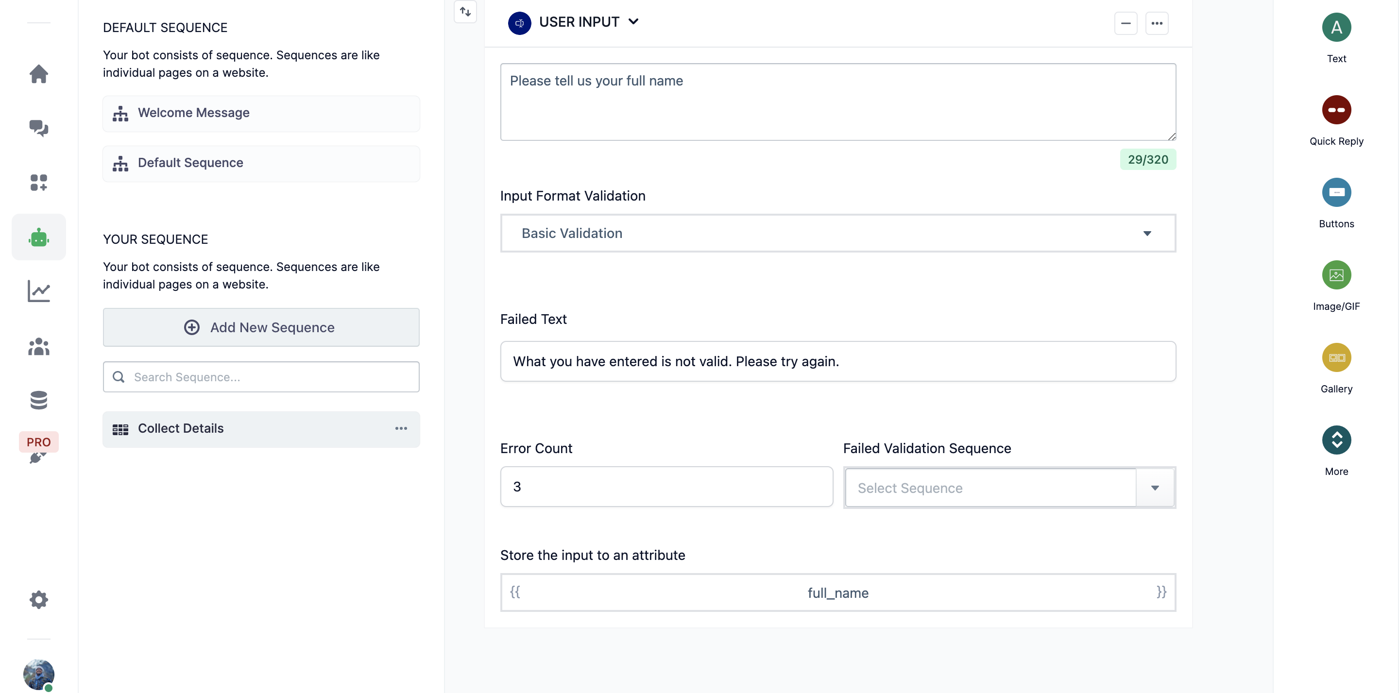 2. Redirect to a sequence where you’ll collect the users information using the User Input block. Use multiple input blocks one after another if you want to collect multiple information.
