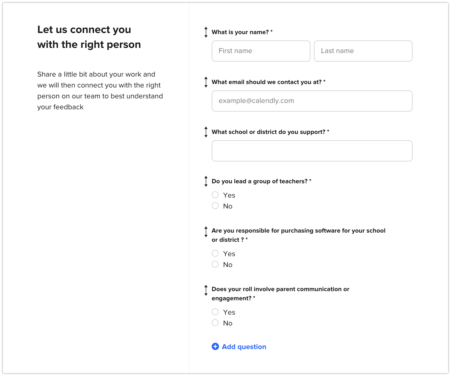 ⭐ Tip: This is only an internal name. Only users within your organization will see this, so choose a name that’s unique and easy to find. - Build your intake form that visitors will land on: