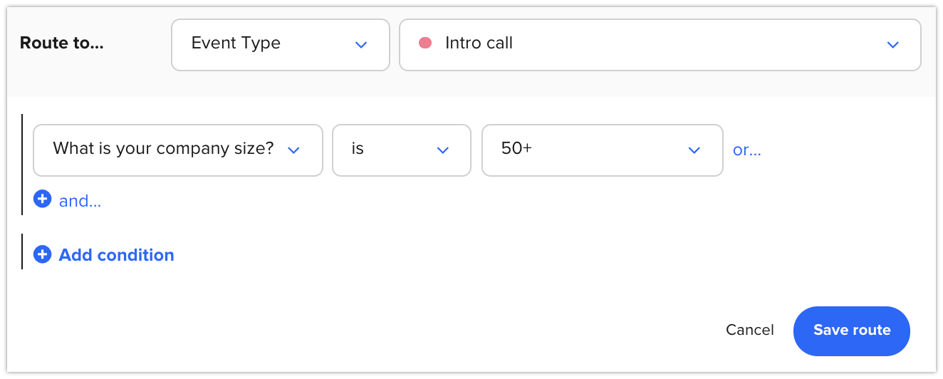 Example: If a visitor’s company size is greater than 50 employees, they can book an Intro call with your team.