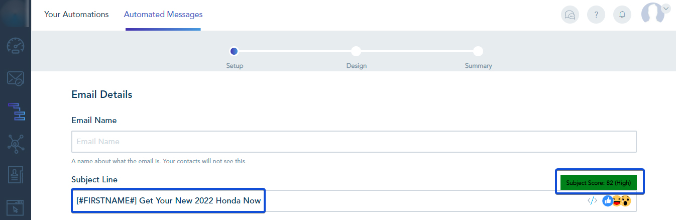A tool that analyzes email subject characteristics and suggests best practices to lets you get a higher open rate.