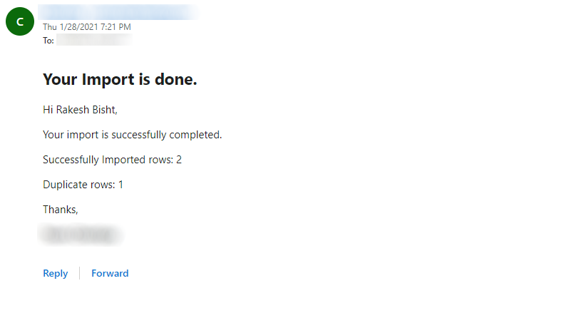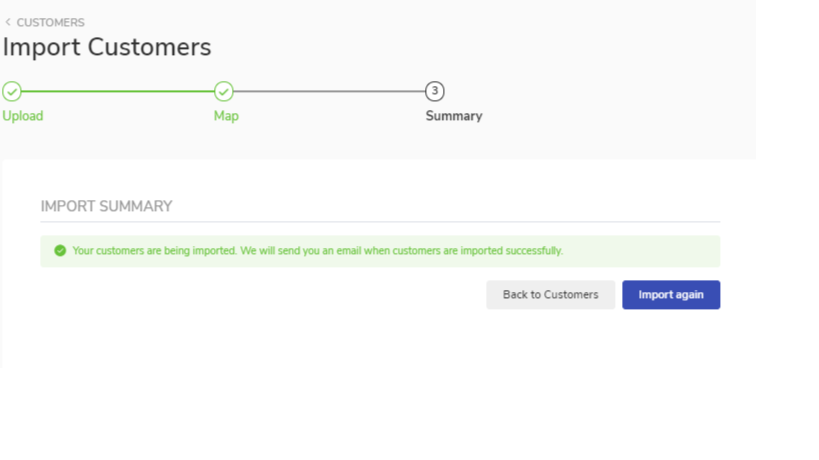 1. If the import is successful with exactly the same number of data you will receive the confirmation by email. Click on the back to customer button.