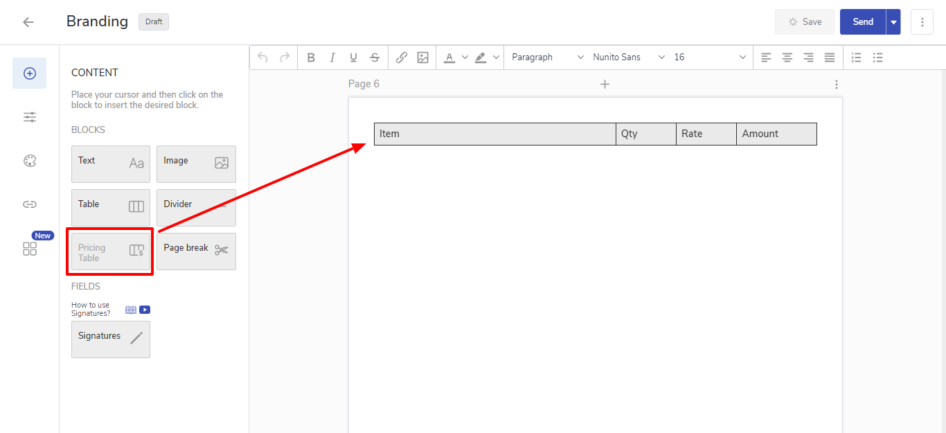 You can also add a pricing table to this Proposal. You can choose to display the pricing table or keep it. It will be useful when converting this Proposal to an Invoice.