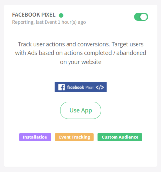 1. From the left navigation, select Ads & Integrations > Facebook 2. Click Use App
