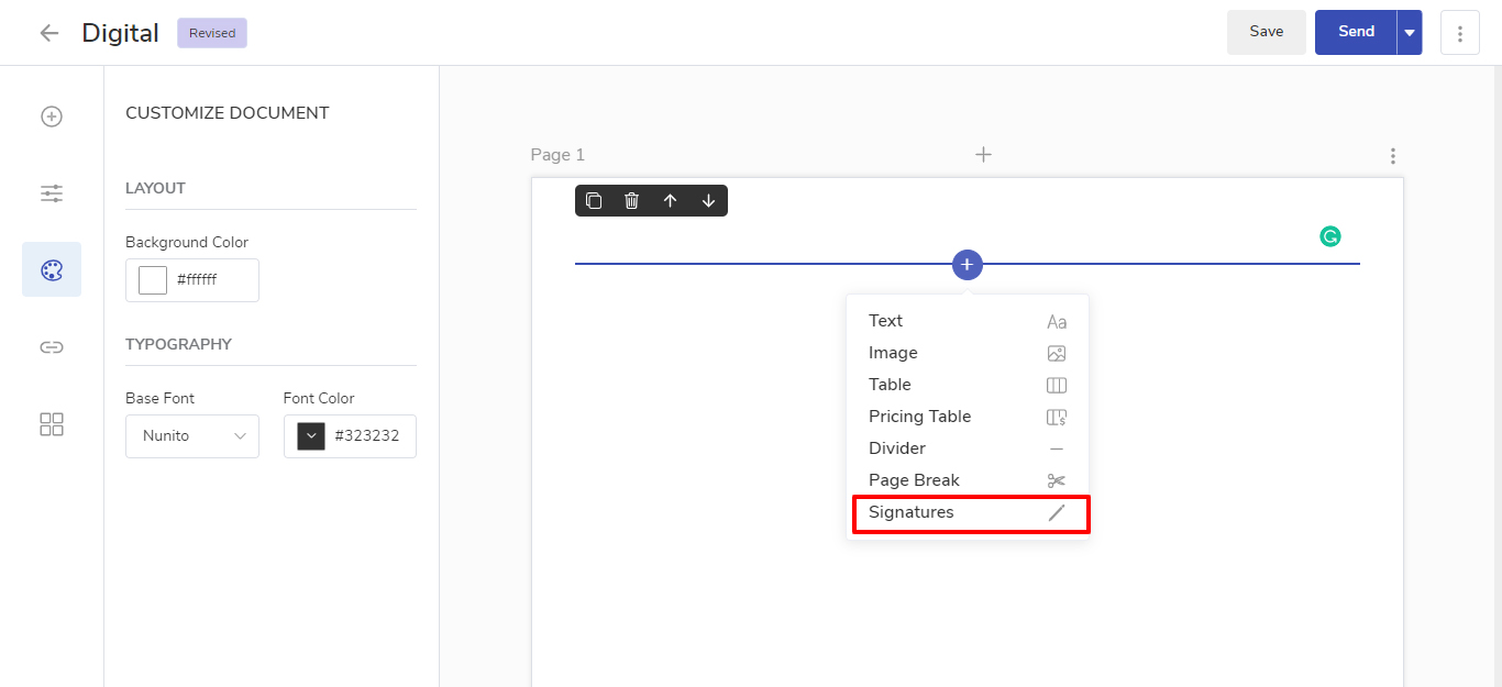 How to add a digital signature option to the Proposal?