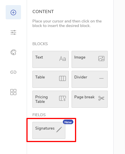To add the signature option click on the Field Signature