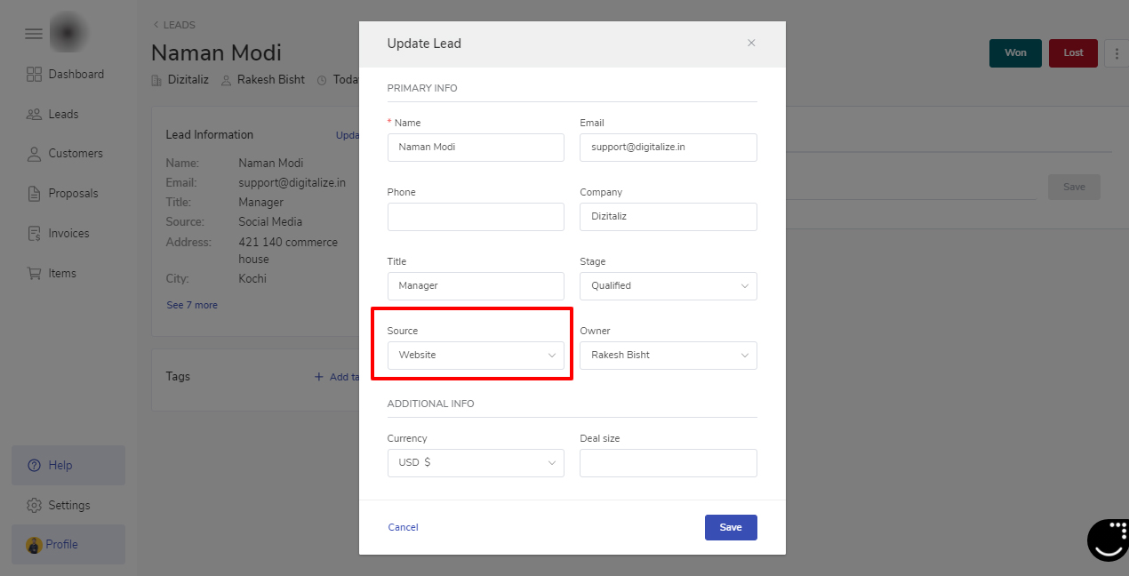 You can add lead on the dashboard along with their sources so that you may have an idea about how you acquired the lead and later if you want to track you can do that easily.
