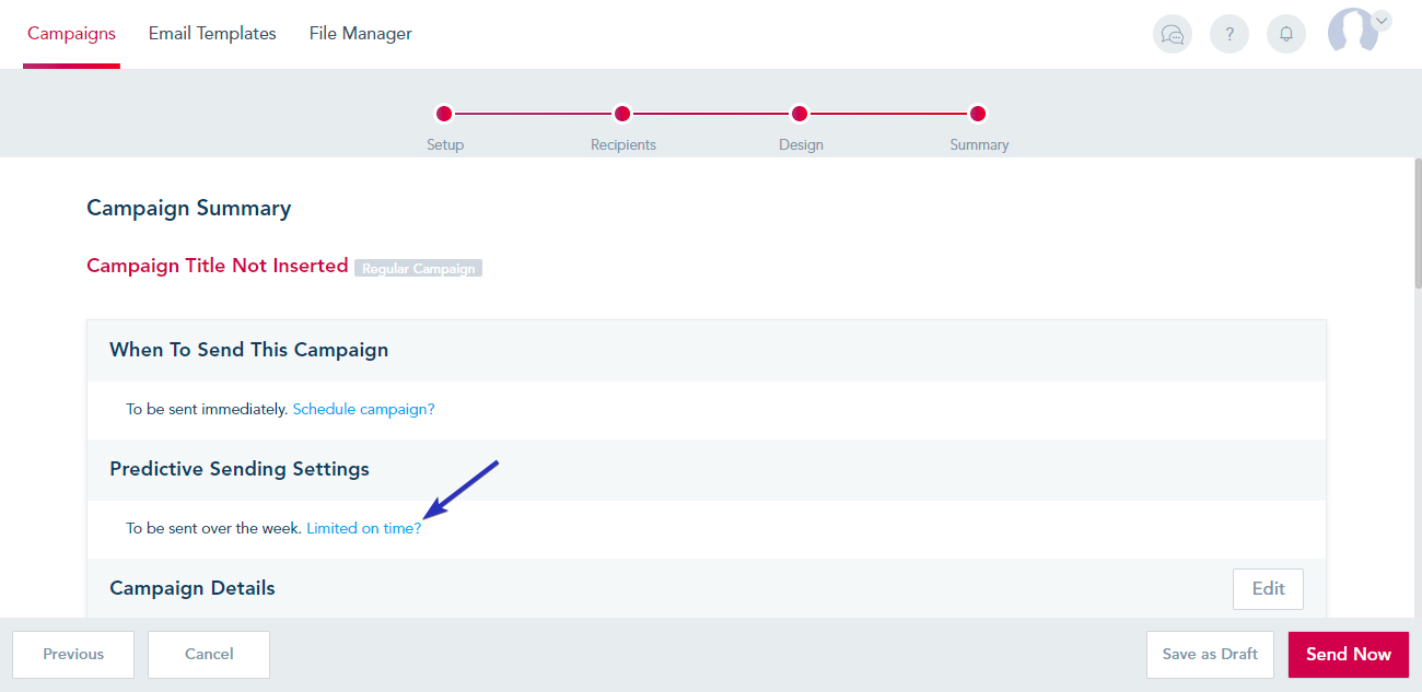 In the Summary tab, you have the option to limit the sending time of the campaign.